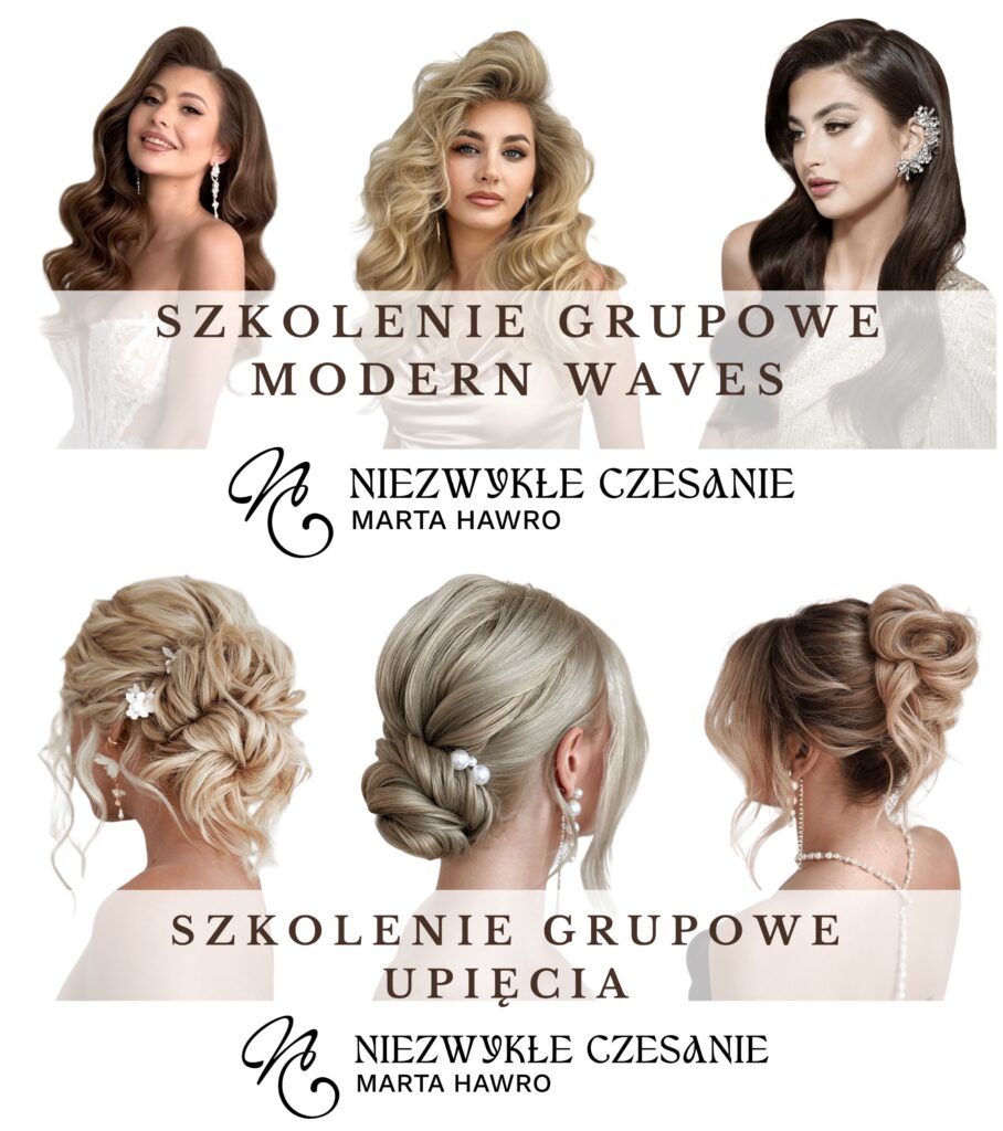 14.06.2026 – Program MODERN WAVES. Poznasz 3 różne stylizację w postaci fal: 1. Amerykańskie Fale Hollywood, 2. Liquid Waves, 3. Fale objętościowe. 15.06.2026 – Upięcia. Poznasz 3 różne formy upięcia włosów.